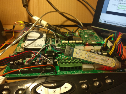 Although the monitor is not visible, what you see here is the infinity board debugging itself. The Bitscope is plugged into the PI3 and the dso software is running on neptune